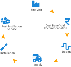 Our Process includes Site visit, Cost beneficial recommendation, Design, Supply, Installation and Post installation service.